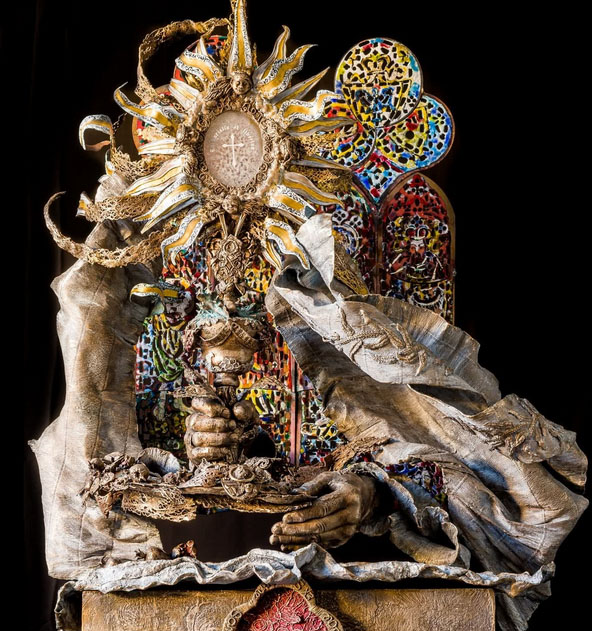 Antoni Gaudi został ogłoszony „Czcigodnym Sługą Bożym”, tytułem, który jest pierwszym etapem procesu beatyfikacji i kanonizacji, poprzez który Kościół katolicki ustanawia nowych świętych. Kierowana silnym przekonaniem o Jego świętości, chciałabym być „gotowa” na tę wielką chwilę ogłoszenia Gaudiego, architekta Boga, błogosławionym, tworząc monumentalną rzeźbę-relikwiarz. Rzeźba przedstawia artystę architekta ubranego w efektowny krawat i ekscentryczną koszulę, w kieszeni której dyskretnie widoczny jest różaniec („jego broń”). Postać jest jakby zanurzona w zadziwiającym świecie idei Katalońskiego artysty .Popiersie jego otaczają bowiem formy nawiązujące do świata Antoniego Gaudiego, artystyczna parafraza jego dzieł, która mowa często symboli, odnosi się do Boga Stwórcy, który zawsze zajmował pierwsze miejsce w jego twórczości.